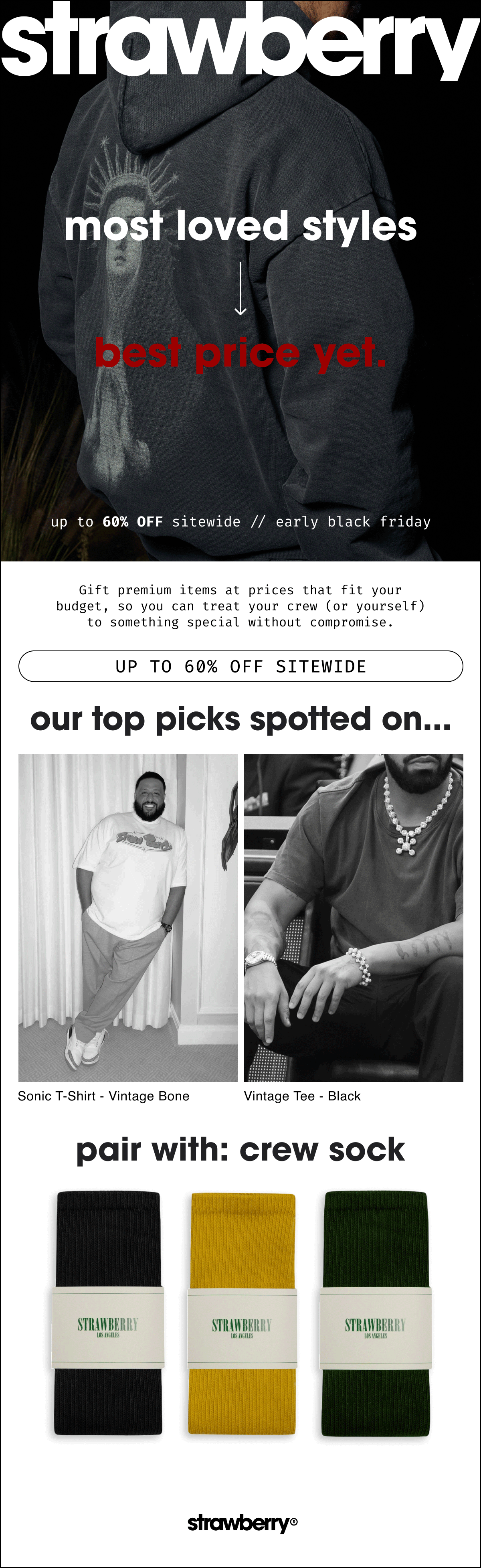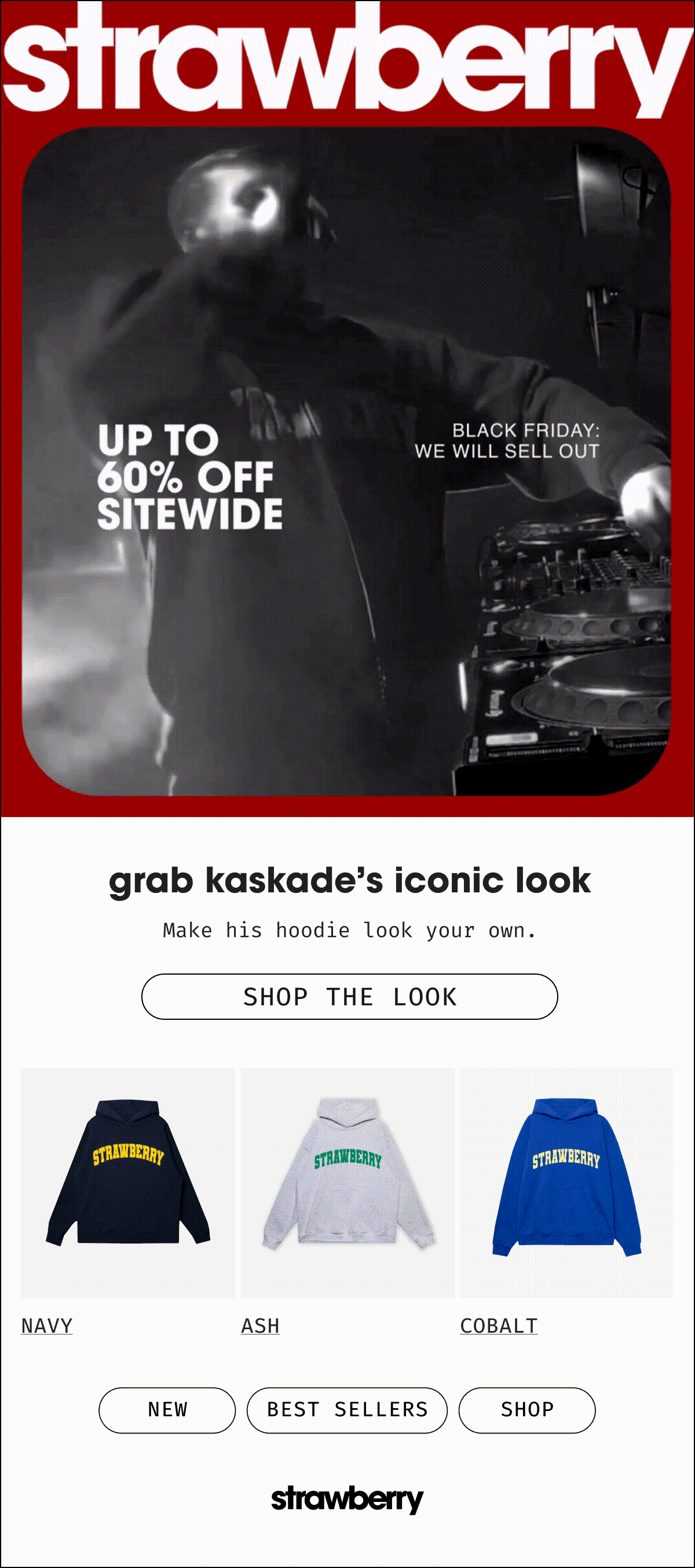 Collaborated with Creative Director on Black Friday + Cyber Monday creative assets to create hype and drive revenue during the biggest sale of the year.